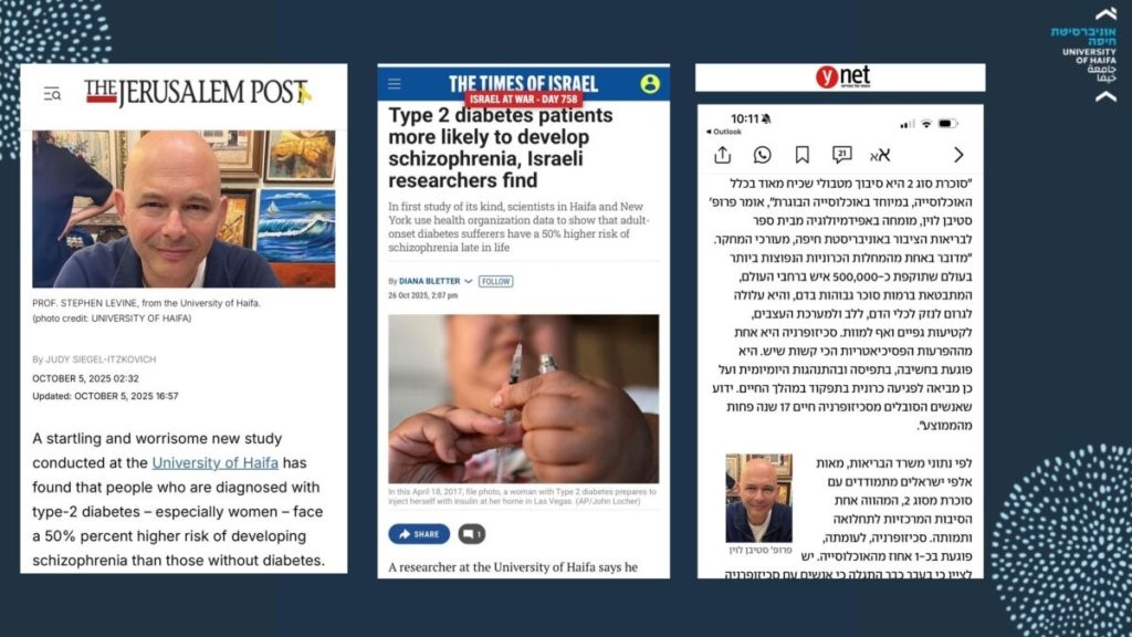 מחקר חדש שנערך בהובלתו של פרופ' סטיבן לוין מבית הספר לבריאות הציבור, פרופ' ערד קודש מהחוג לבריאות נפש קהילתית וקופת חולים ׳מאוחדת׳, יחד עם פרופ' אברהם רייכנברג מהחוג לפסיכיאטריה בבית החולים 'מאונט סיני' בניו יורק, ביקש לבדוק האם אבחון סוכרת מסוג 2 בגיל העמידה מגביר את הסיכון להתפרצות סכיזופרניה בשנים מאוחרות יותר בחיים.
